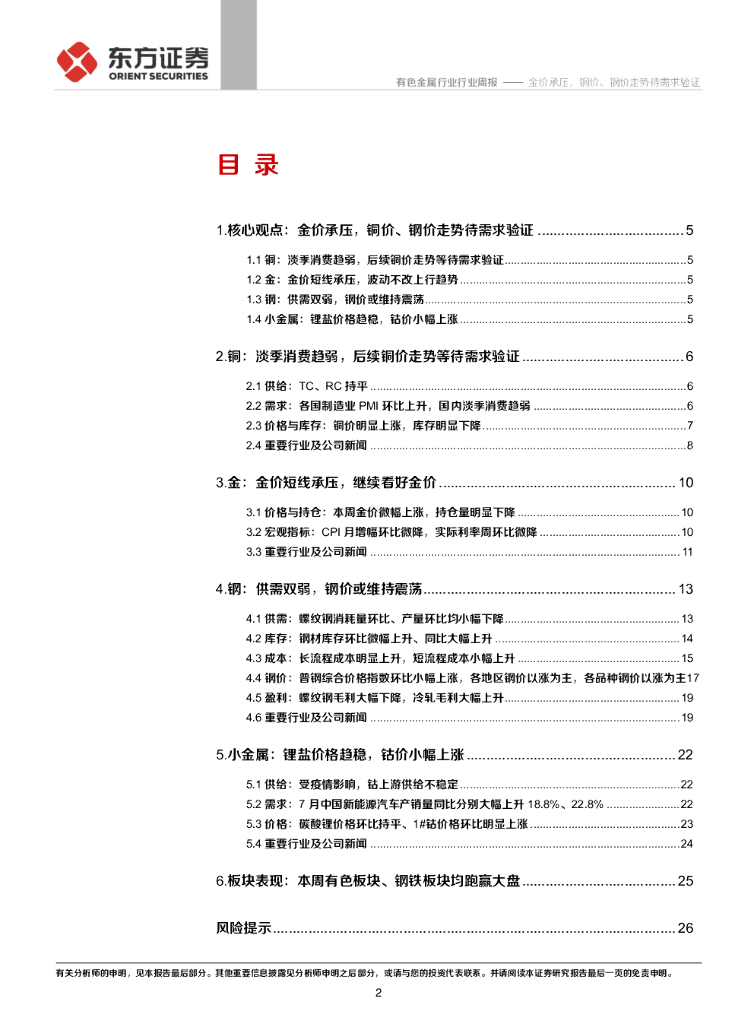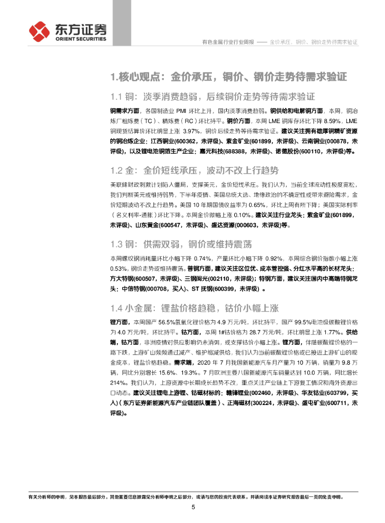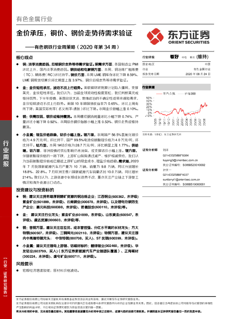 东方证券:有色钢铁行业周策略(2020年第34周):金价承压,铜价、钢价走势待需求验证.pdf