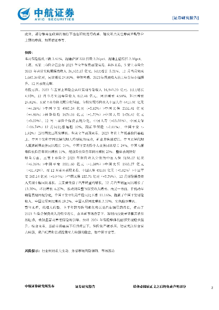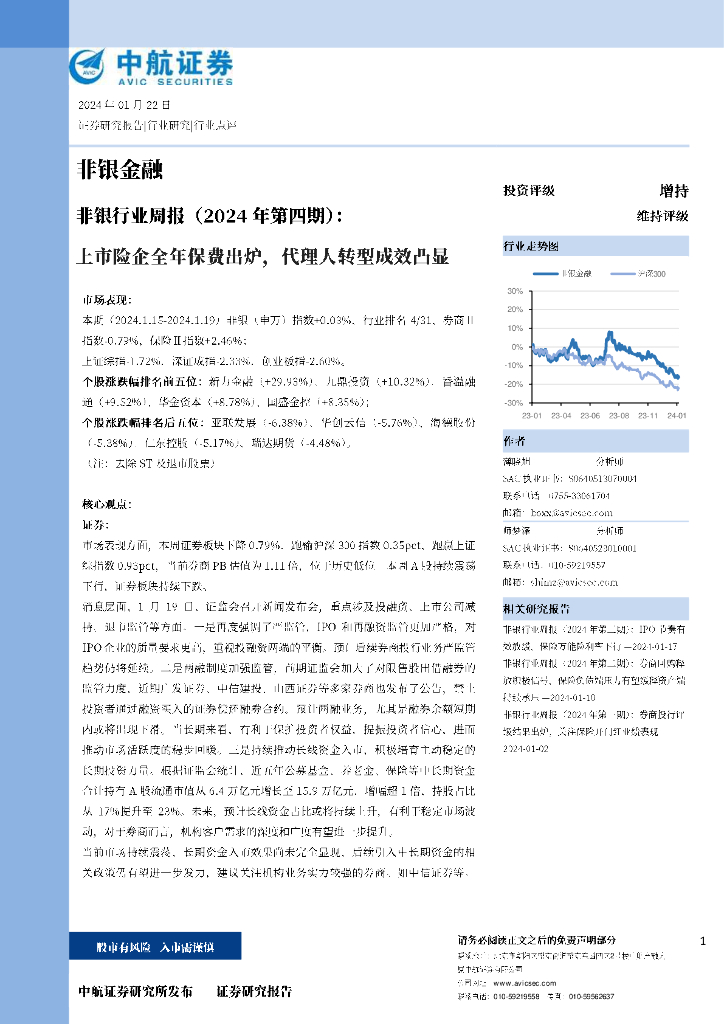 中航证券:非银行业周报(2024年第四期):上市险企全年保费出炉,代理人转型成效凸显.pdf