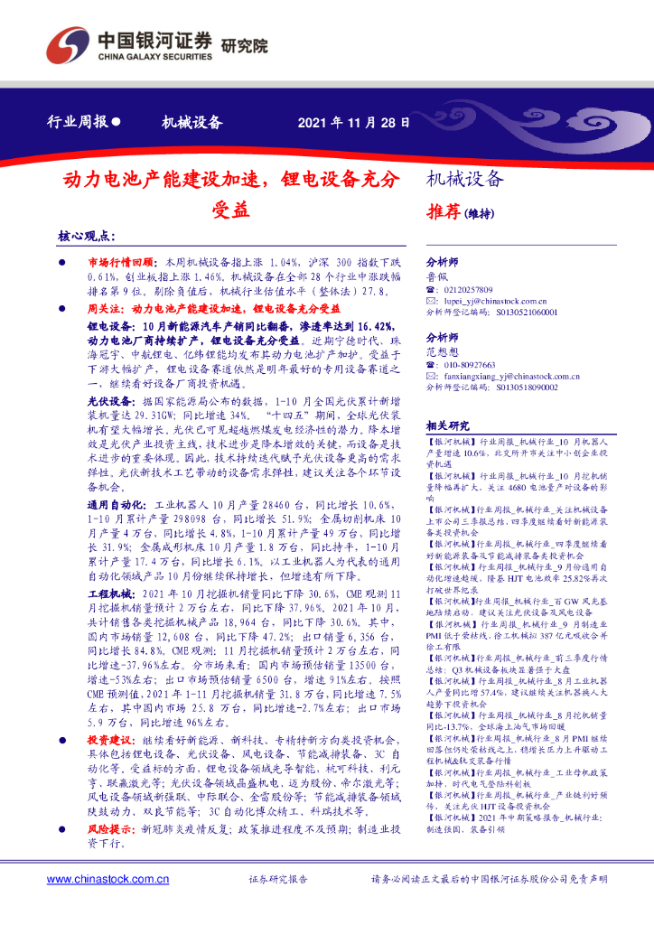中国银河:机械设备行业周报:动力电池产能建设加速,锂电设备充分受益.pdf
