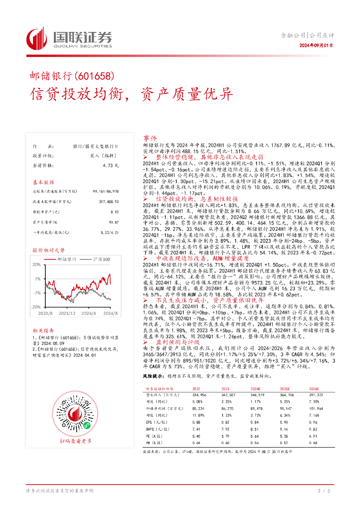 国联证券:邮储银行(601658)-信贷投放均衡,资产质量优异.pdf