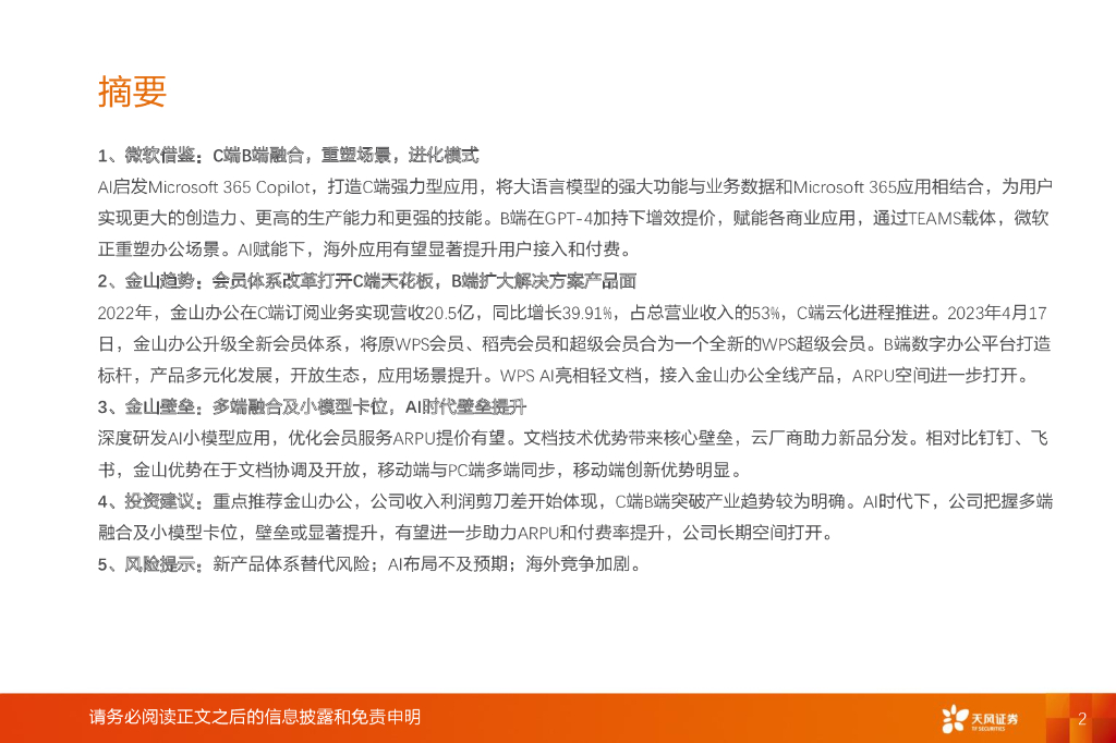 天风证券:计算机行业专题研究:办公场景重塑,详解金山办公AI时代的竞争壁垒.pdf