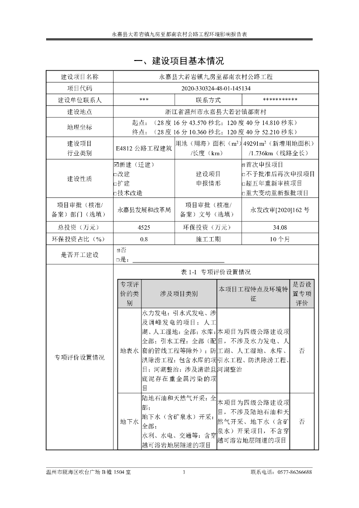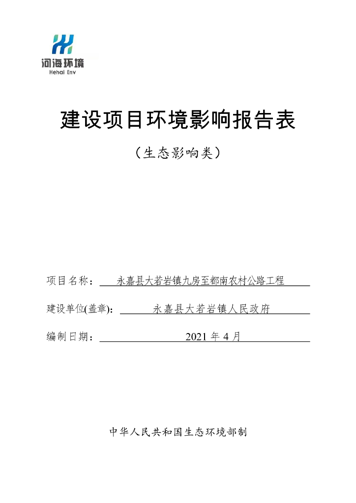 永嘉县大若岩镇九房至都南农村公路工程建设项目环境影响报告表(生态影响类).pdf