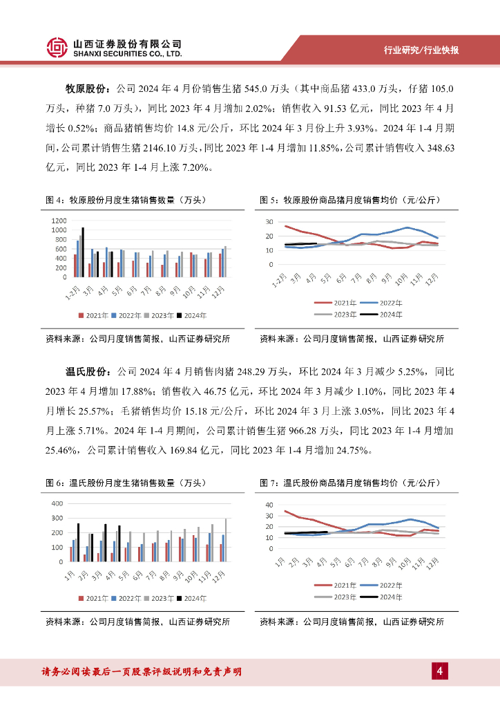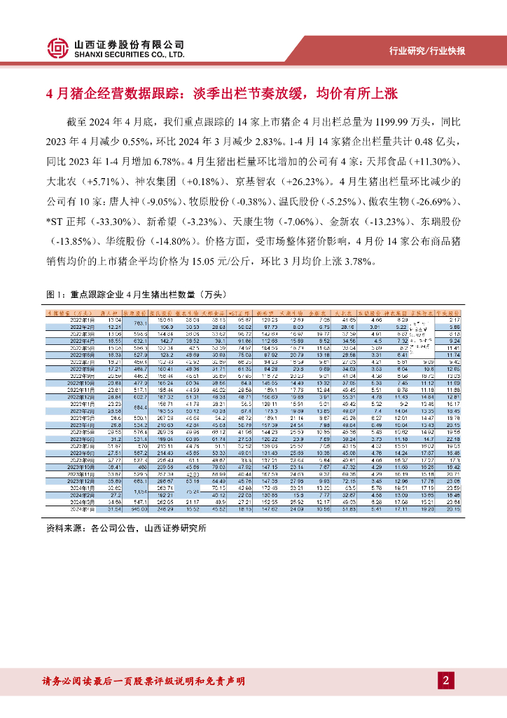 山西证券:4月上市猪企经营数据跟踪:淡季出栏节奏放缓,仔猪价格持续走高.pdf
