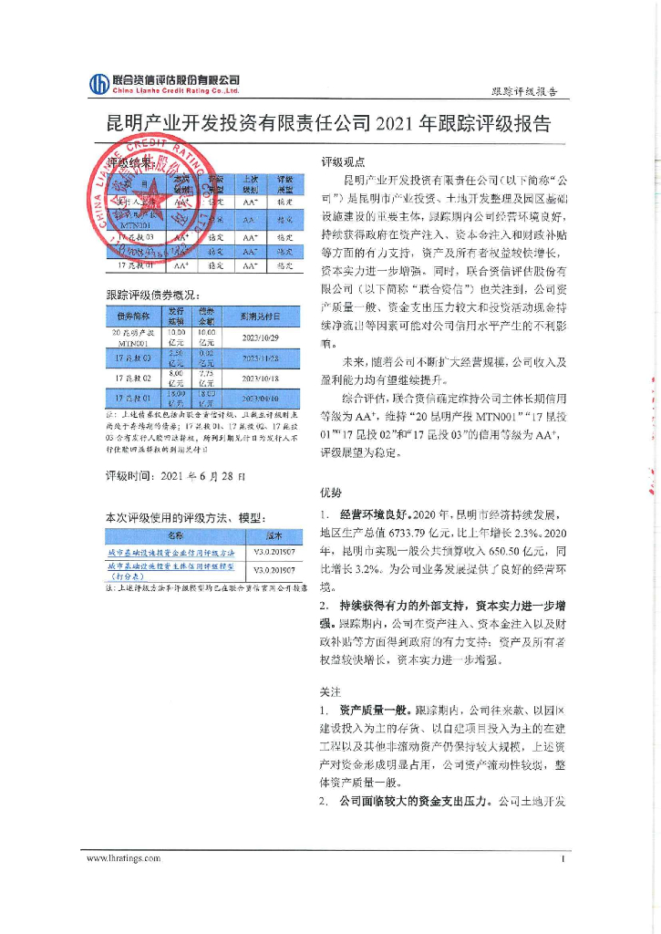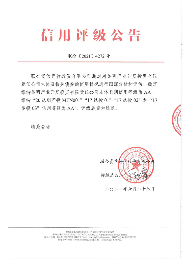 联合资信:昆明产业开发投资有限责任公司2021年跟踪评级报告.pdf
