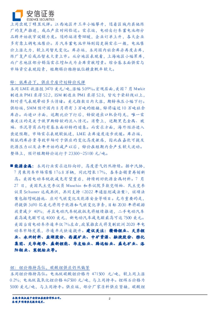 安信证券:有色金属行业周报:需求边际向好拉动锂价,宏观压力下工业金属持续震荡.pdf