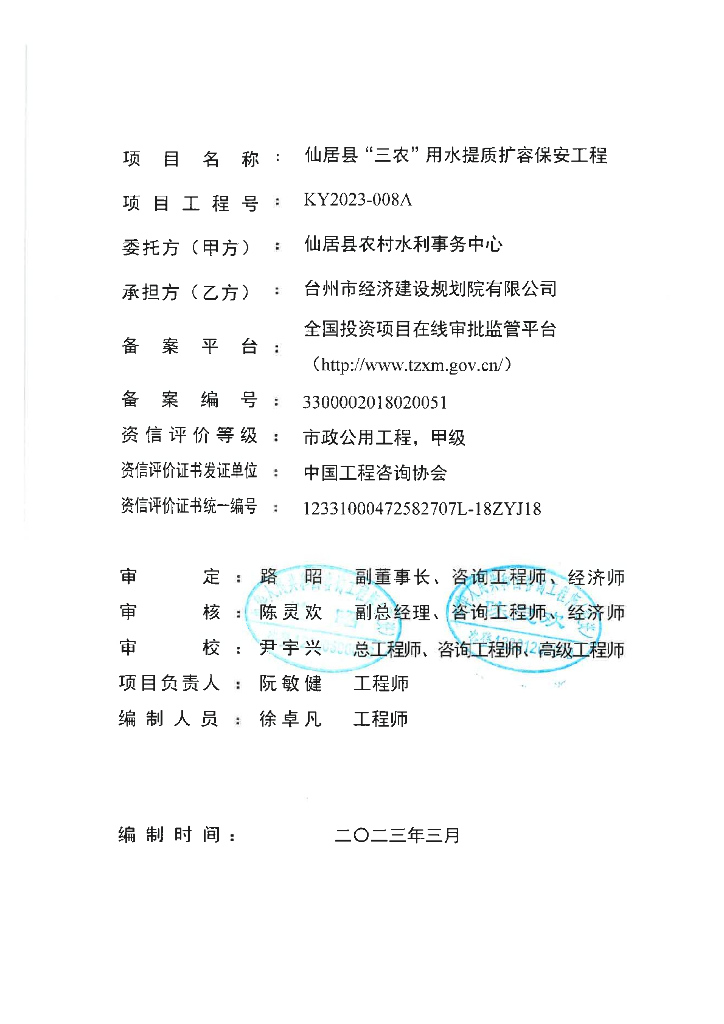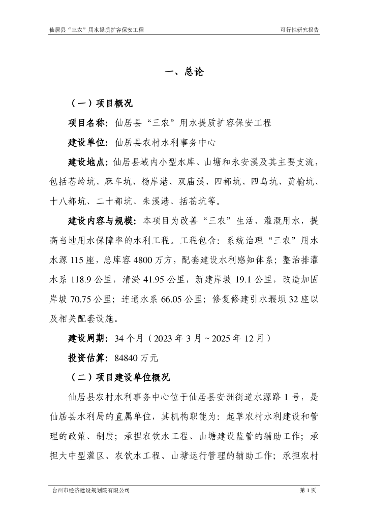 仙居县“三农”用水提质扩容保安工程可行性研究报告.pdf
