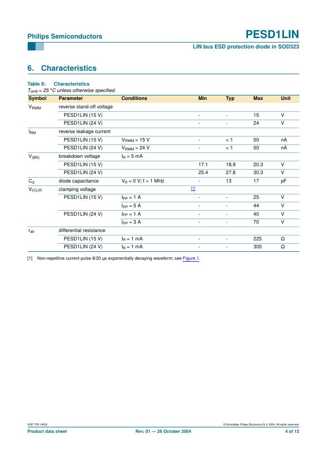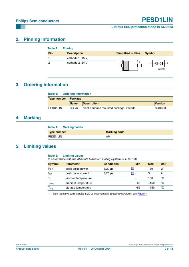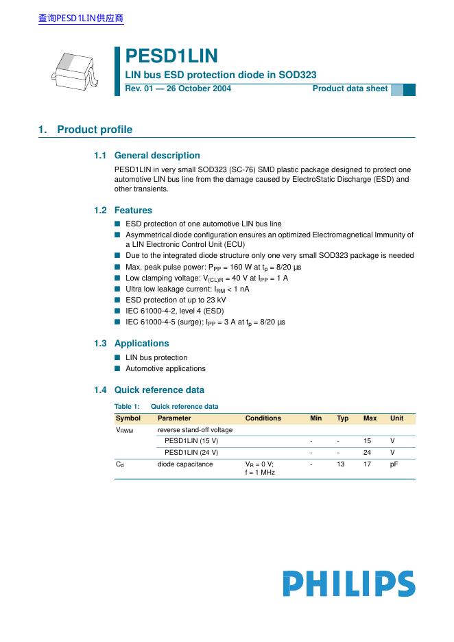 PHILIPS PESD1LIN LIN bus ESD protection diode in SOD323 数据手册.pdf