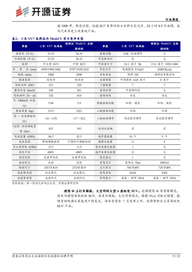 开源证券:汽车行业周报:小米YU7正式发布,特斯拉如期推出Robotaxi.pdf