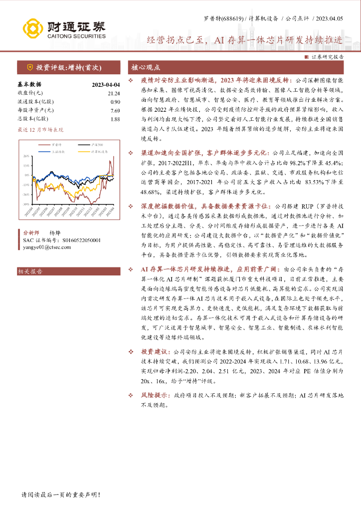 财通证券:罗普特(688619)-经营拐点已至,AI存算一体芯片研发持续推进.pdf
