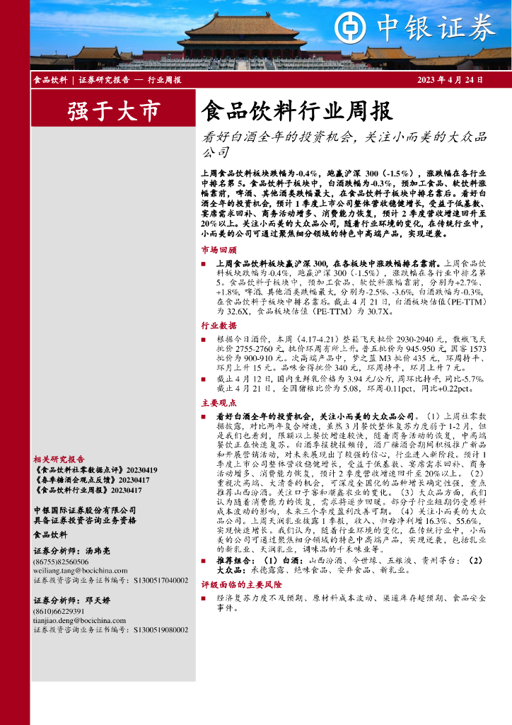 中银证券:食品饮料行业周报:看好白酒全年的投资机会,关注小而美的大众品公司.pdf