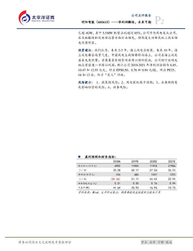 太平洋证券:明阳智能(601615)-拟定增募资不超60亿,持续引领海上风电发展.pdf