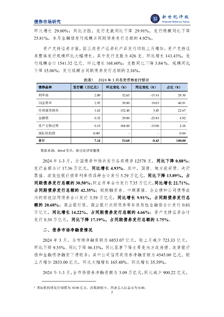 新世纪评级:债市发行规模环比增长显著——2024年3月债券市场发行概况与政策汇总.pdf