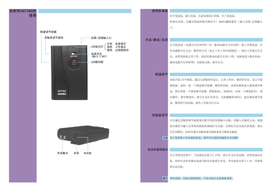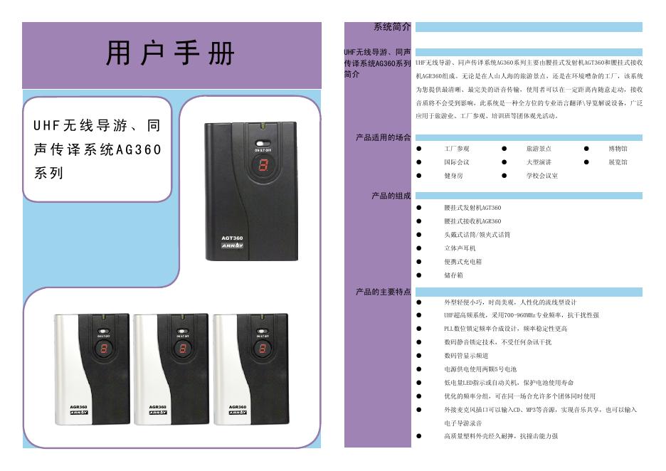 UHF无线导游、同声传译系统AG360系列 用户手册.pdf