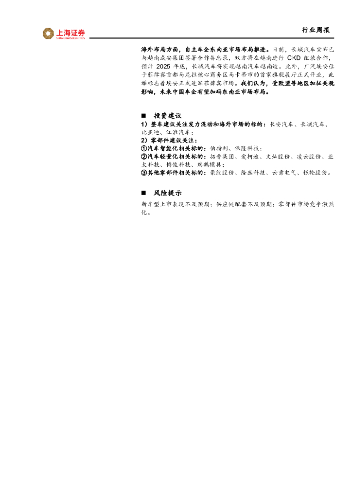 上海证券:汽车与零部件行业周报:乐道L60、极氪7X上市,自主车企东南亚市场布局推进.pdf