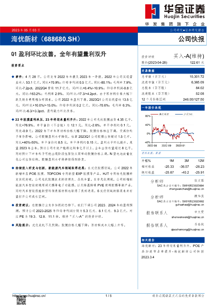 华金证券:海优新材(688680)-Q1盈利环比改善,全年有望量利双升.pdf