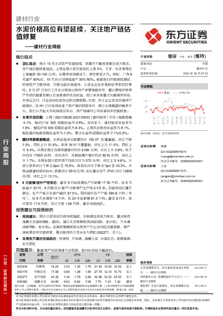 东方证券:建材行业周报:水泥价格高位有望延续,关注地产链估值修复.pdf