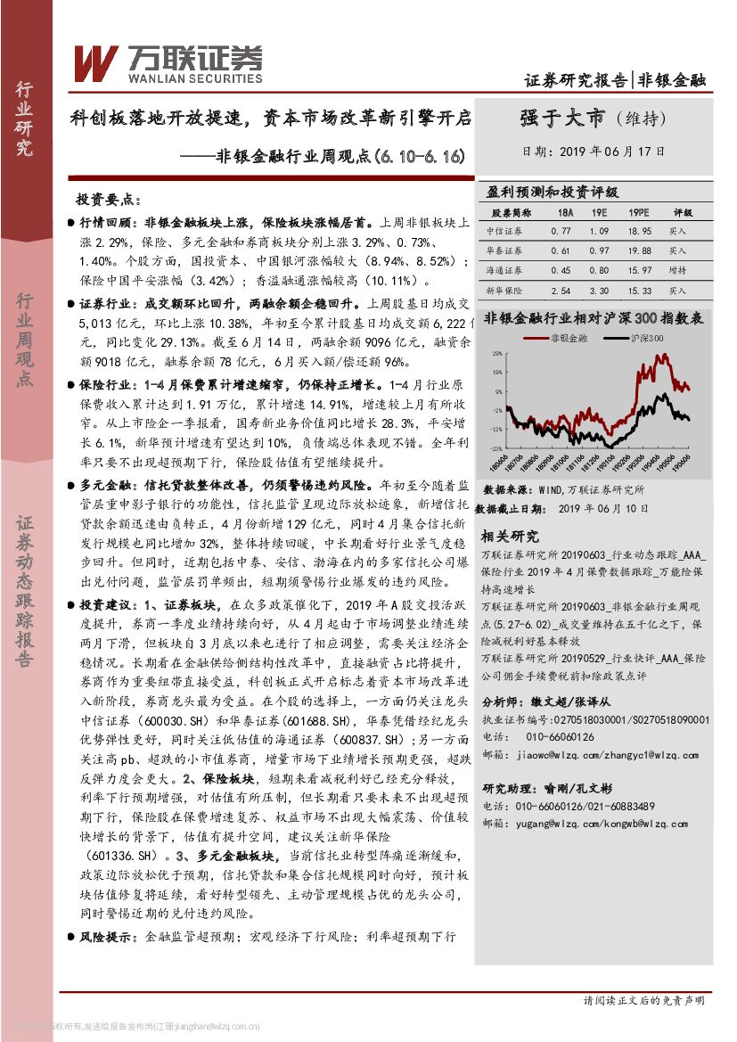 万联证券:非银金融行业周观点:科创板落地开放提速,资本市场改革新引擎开启.pdf