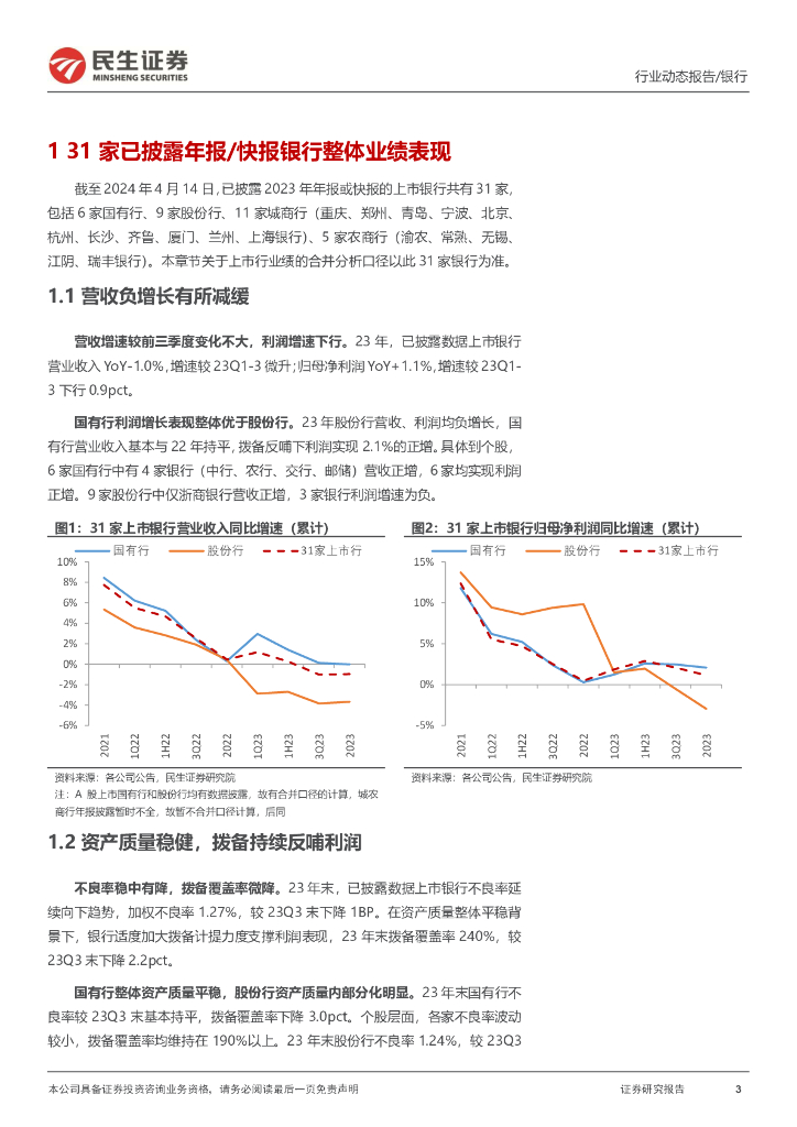 民生证券:31家上市银行2023年业绩综述:个贷风险略升,多家提高分红.pdf