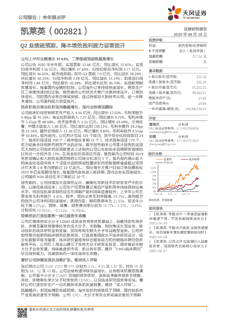 天风证券:凯莱英(002821)-Q2业绩超预期,降本增效盈利能力显著提升.pdf
