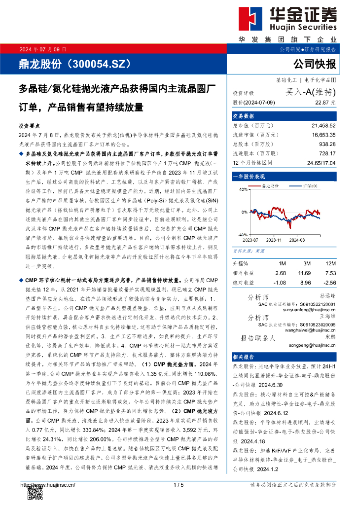 华金证券:鼎龙股份(300054)-多晶硅/氮化硅抛光液产品获得国内主流晶圆厂订单,产品销售有望持续放量.pdf