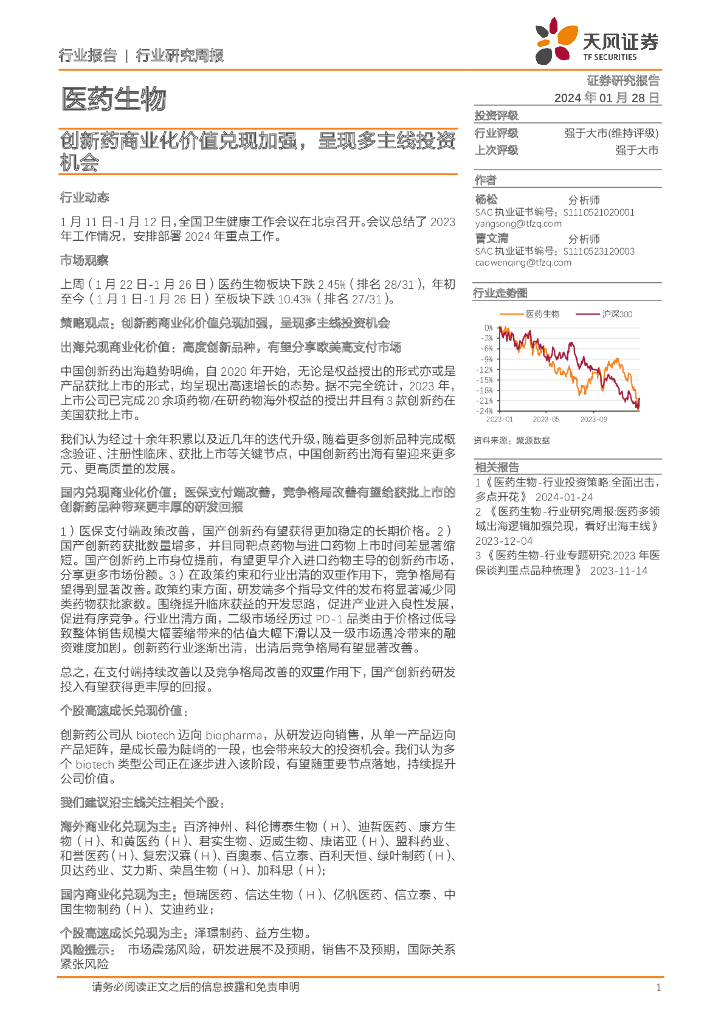 天风证券:医药生物行业研究周报:创新药商业化价值兑现加强,呈现多主线投资机会.pdf