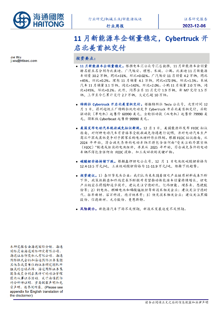 海通国际:新能源板块行业周报:11月新能源车企销量稳定,Cybertruck开启北美首批交付.pdf