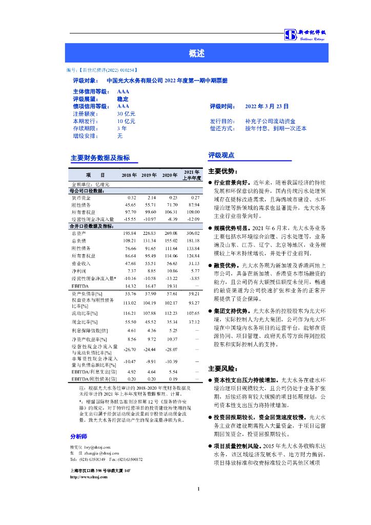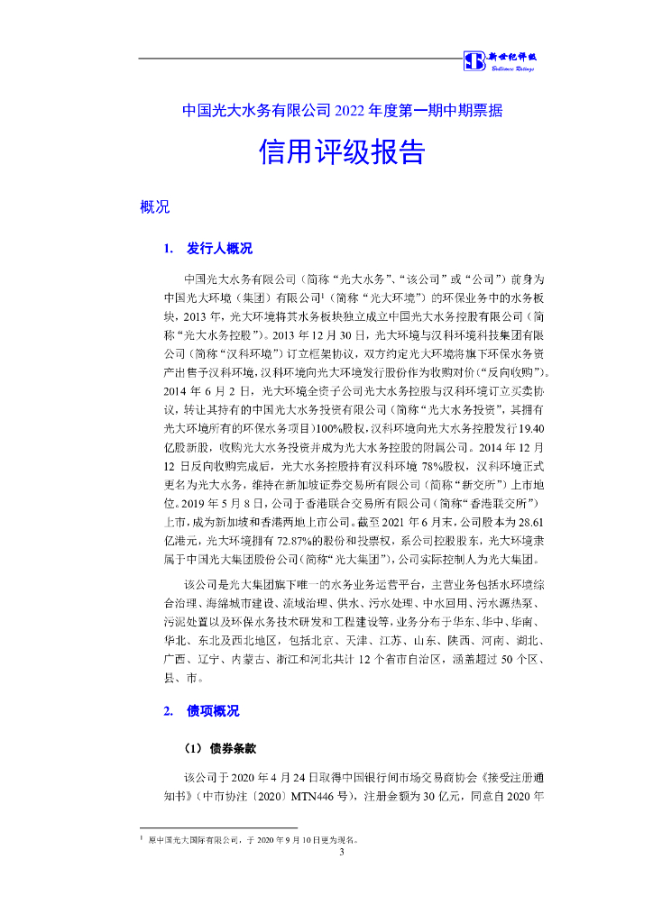 新世纪:中国光大水务有限公司2022年度第一期中期票据信用评级报告.pdf