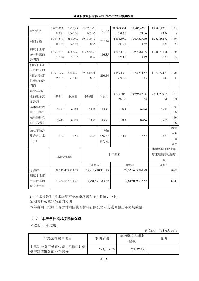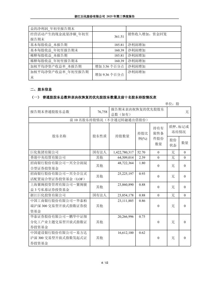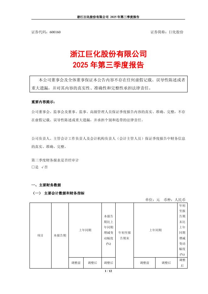 600160-巨化股份:巨化股份2025年第三季度报告.pdf