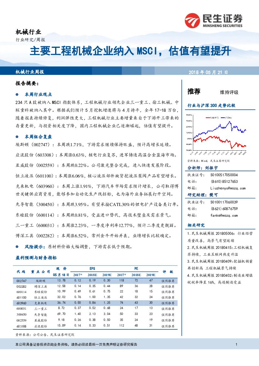 民生证券:机械行业研究周报:主要工程机械企业纳入MSCI,估值有望提升.pdf
