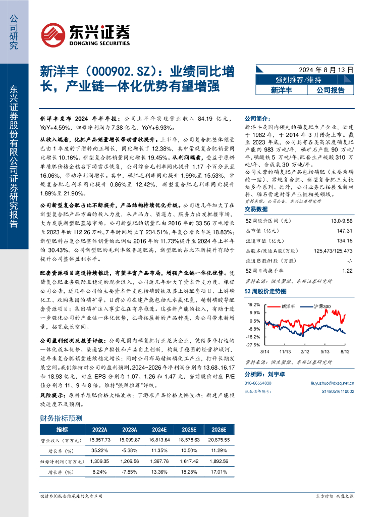 东兴证券:新洋丰(000902)-业绩同比增长,产业链一体化优势有望增强.pdf