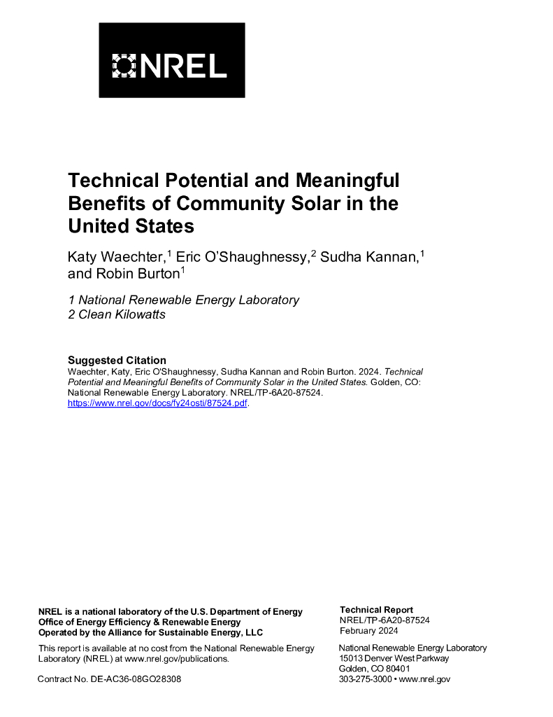 NREL:2024年美国社区太阳能的技术潜力和意义报告(英文版).pdf