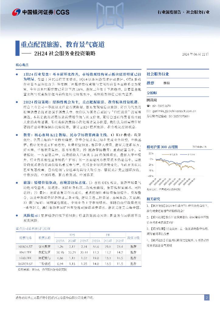中国银河:2H24社会服务业投资策略:重点配置旅游、教育景气赛道.pdf