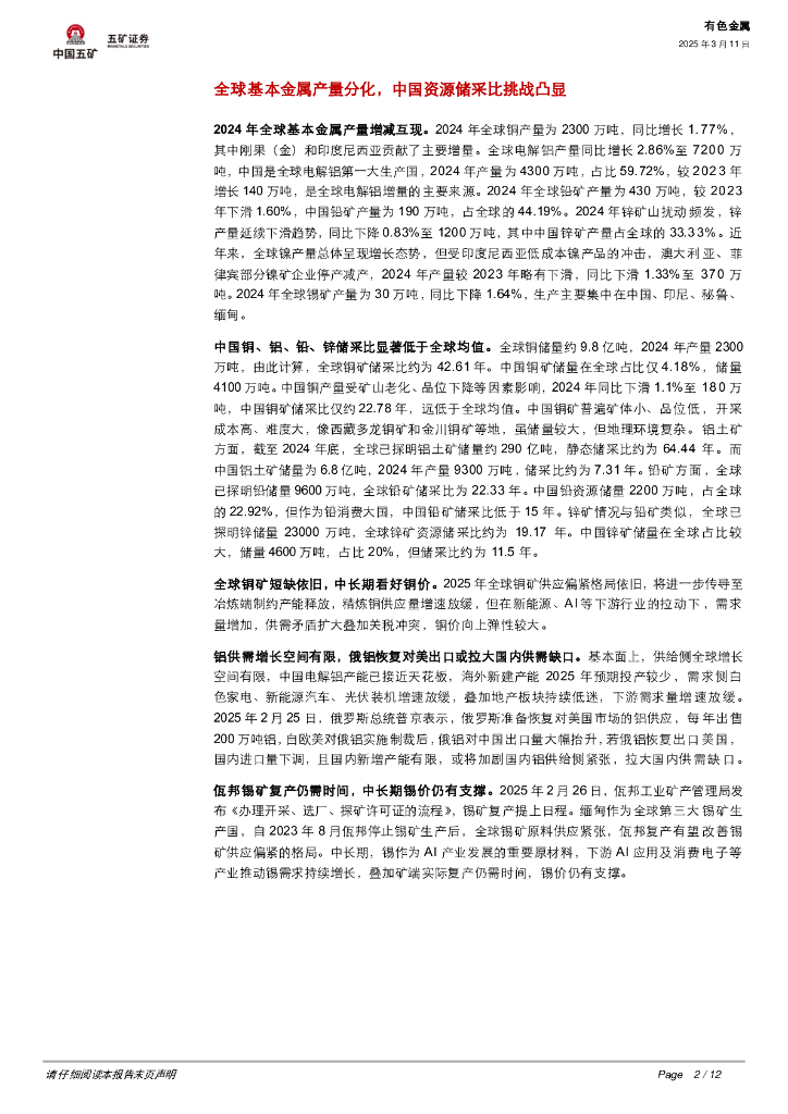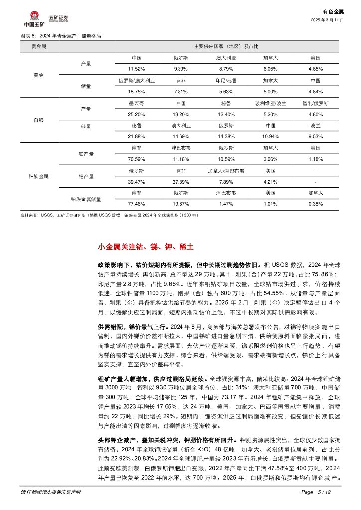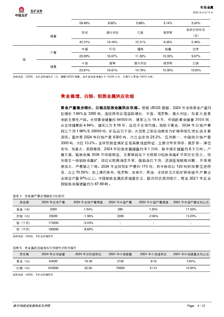 五矿证券:有色金属:USGS2024年数据洞察:产量、储量分化,聚焦关键矿产.pdf