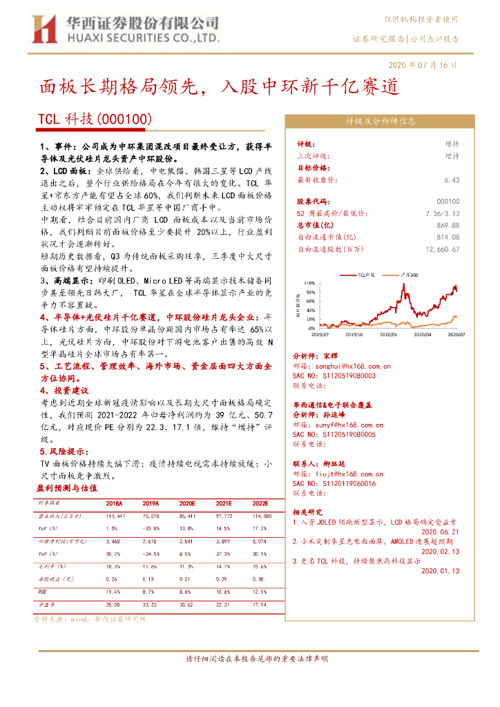 华西证券:TCL科技(000100)-面板长期格局领先,入股中环新千亿赛道.pdf