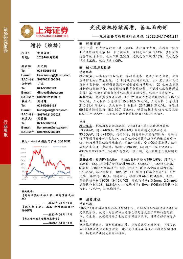 上海证券:电力设备与新能源行业周报:光伏装机持续高增,基本面向好.pdf