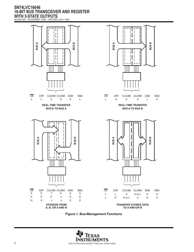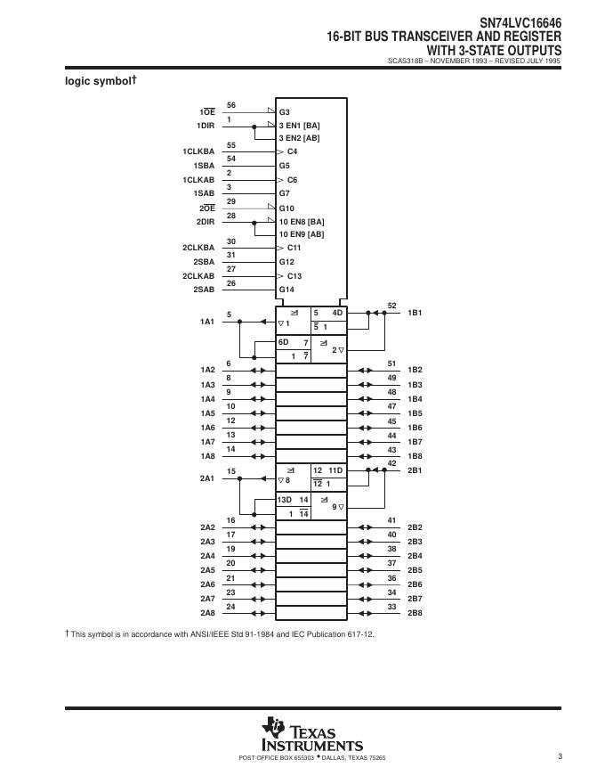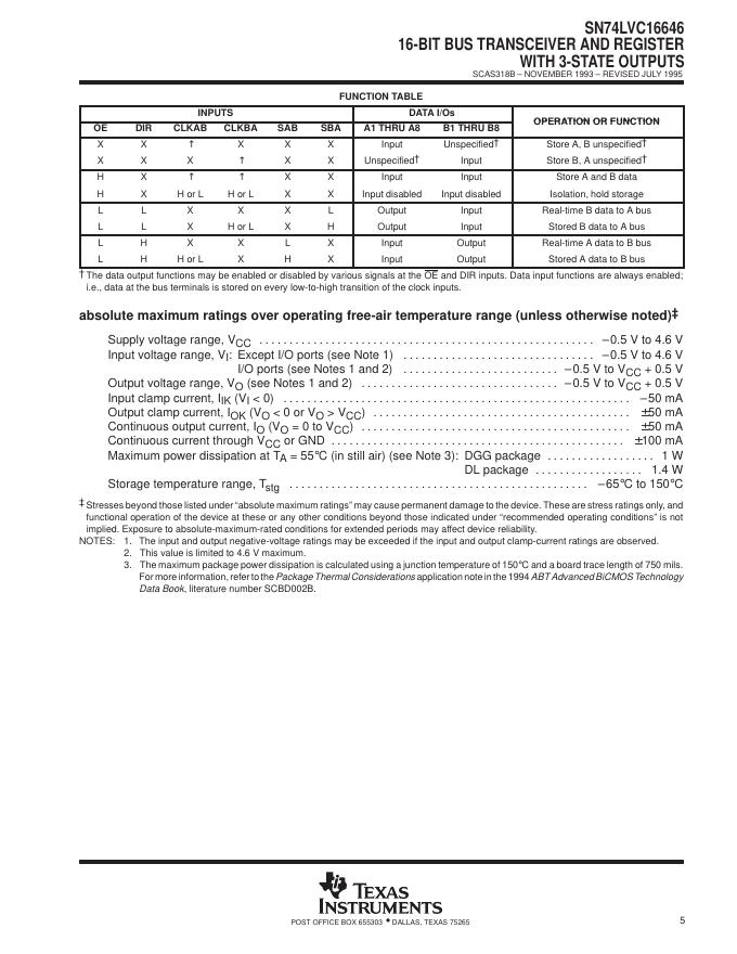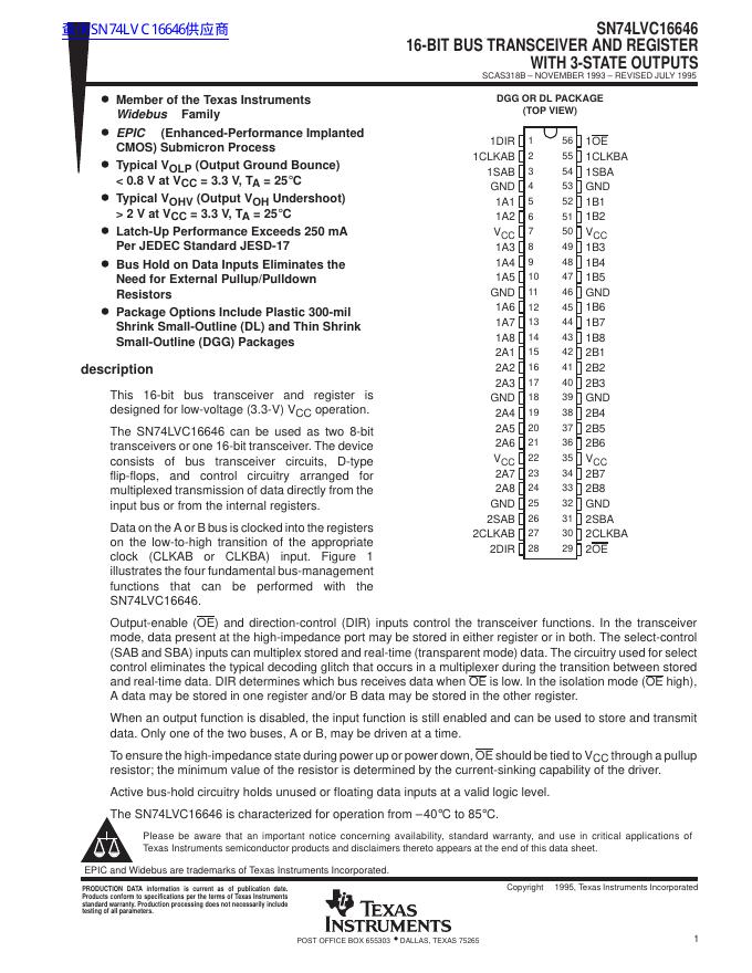 TEXAS INSTRUMENTS SN74LVC16646 16-BIT BUS TRANSCEIVER AND REGISTER WITH 3-STATE OUTPUTS 数据手册.pdf
