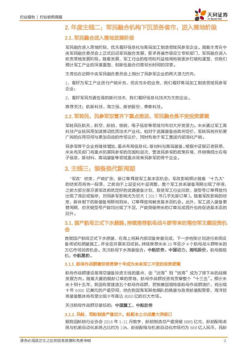 天风证券:国防军工:板块持续调整,中报稳定向好,关注权重与白马新上车机遇.pdf