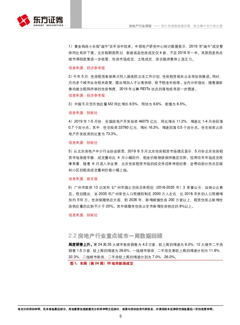 东方证券:2019年第24周地产周报:统计局销售数据回落,房企集中发行美元债.pdf