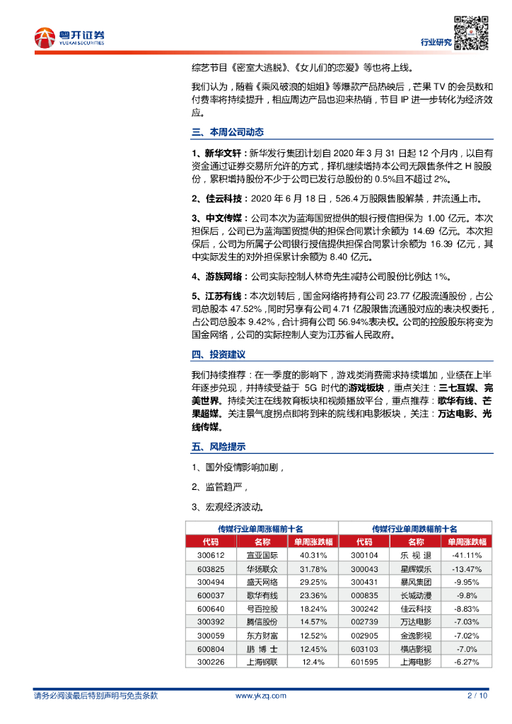 粤开证券:【粤开传媒周报】 静待院线拐点出现,持续看好游戏和在线教育.pdf