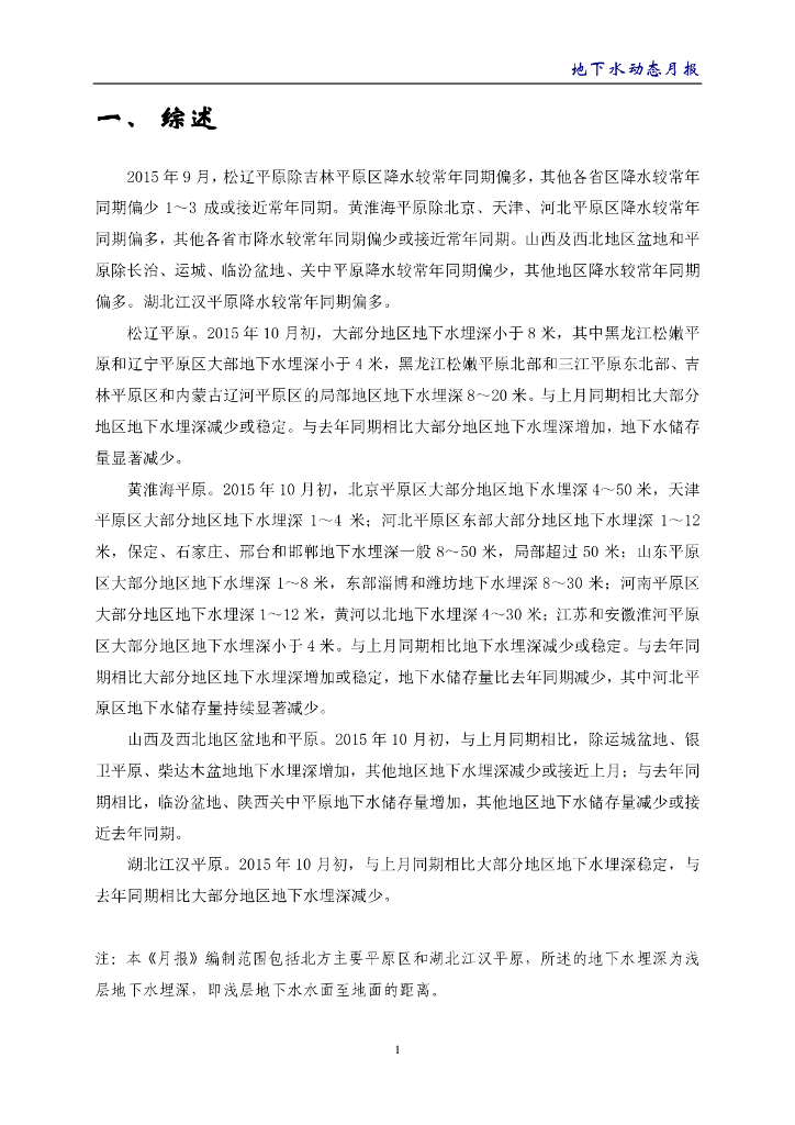 水利部:《地下水动态月报》2015年10月.pdf
