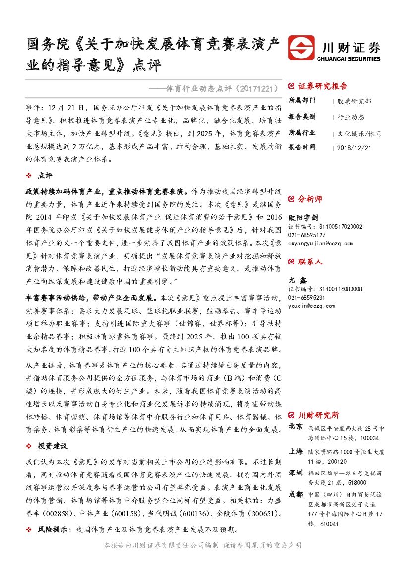 川财证券:体育行业动态点评:国务院《关于加快发展体育竞赛表演产业的指导意见》点评.pdf