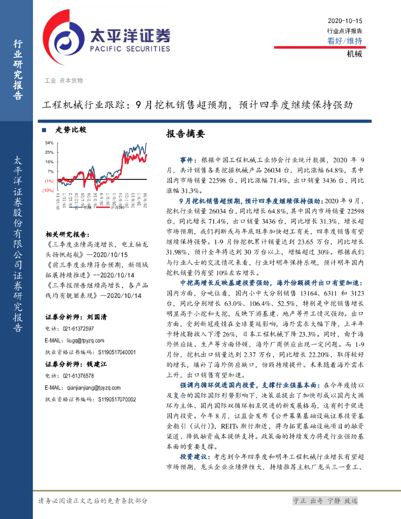 太平洋证券:工程机械行业跟踪:9月挖机销售超预期,预计四季度继续保持强劲.pdf