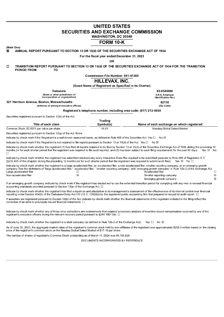 HilleVax, Inc.(HLVX)2023财年年度报告(英文版).pdf