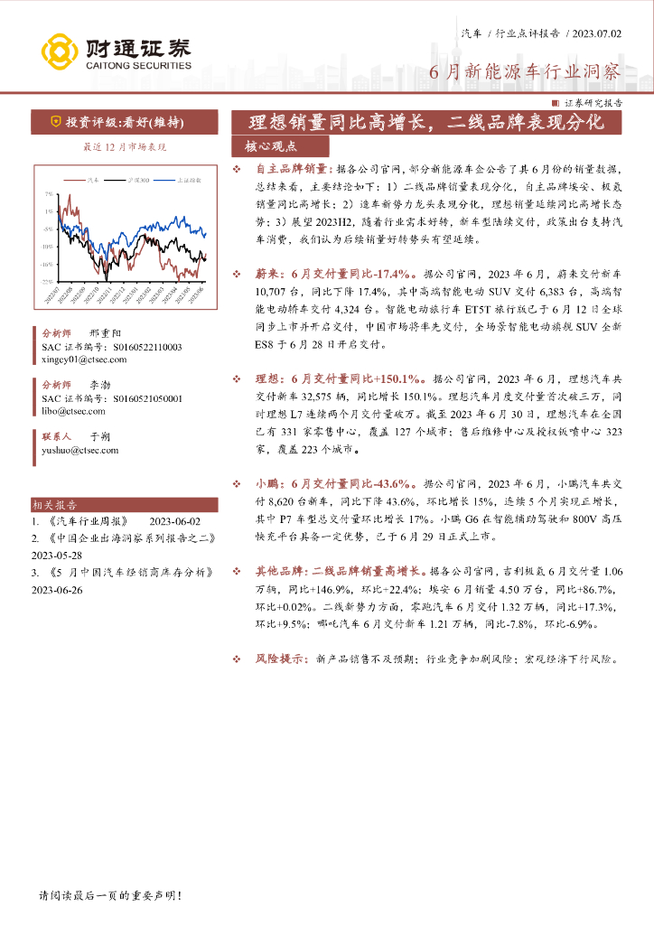 财通证券:6月新能源车行业洞察:理想销量同比高增长,二线品牌表现分化.pdf
