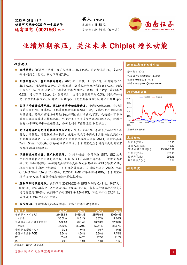 西南证券:通富微电(002156)-业绩短期承压,关注未来Chiplet增长动能.pdf