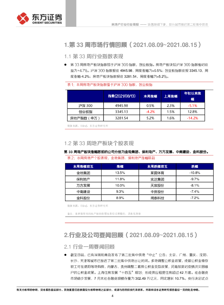 东方证券:2021年第33周地产周报:销售继续下滑,部分城市推迟第二轮集中供地.pdf