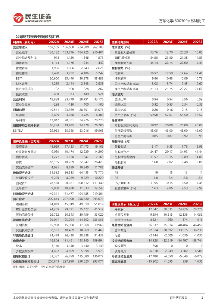 民生证券:万华化学(600309)-2022年年报点评:主业景气度回升,新材料渐挑大梁.pdf