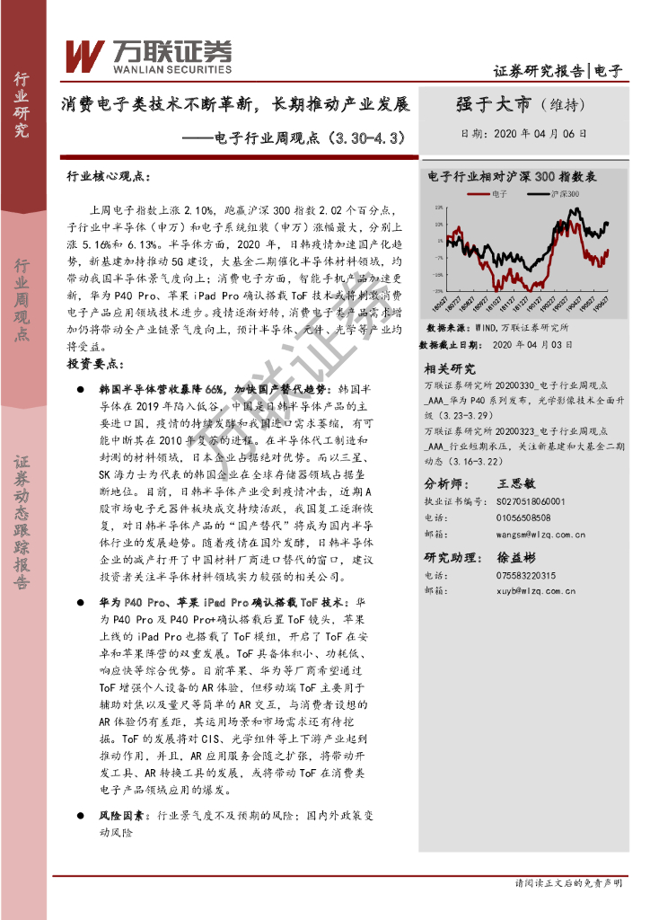 万联证券:电子行业周观点:消费电子类技术不断革新,长期推动产业发展.pdf