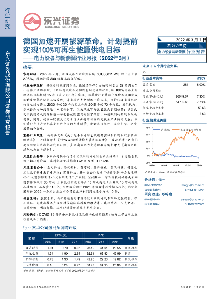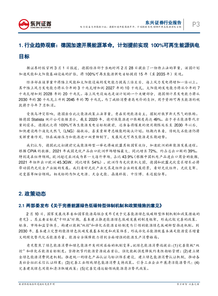 东兴证券:电力设备与新能源行业月报(2022年3月):德国加速开展能源革命,计划提前实现100%可再生能源供电目标.pdf