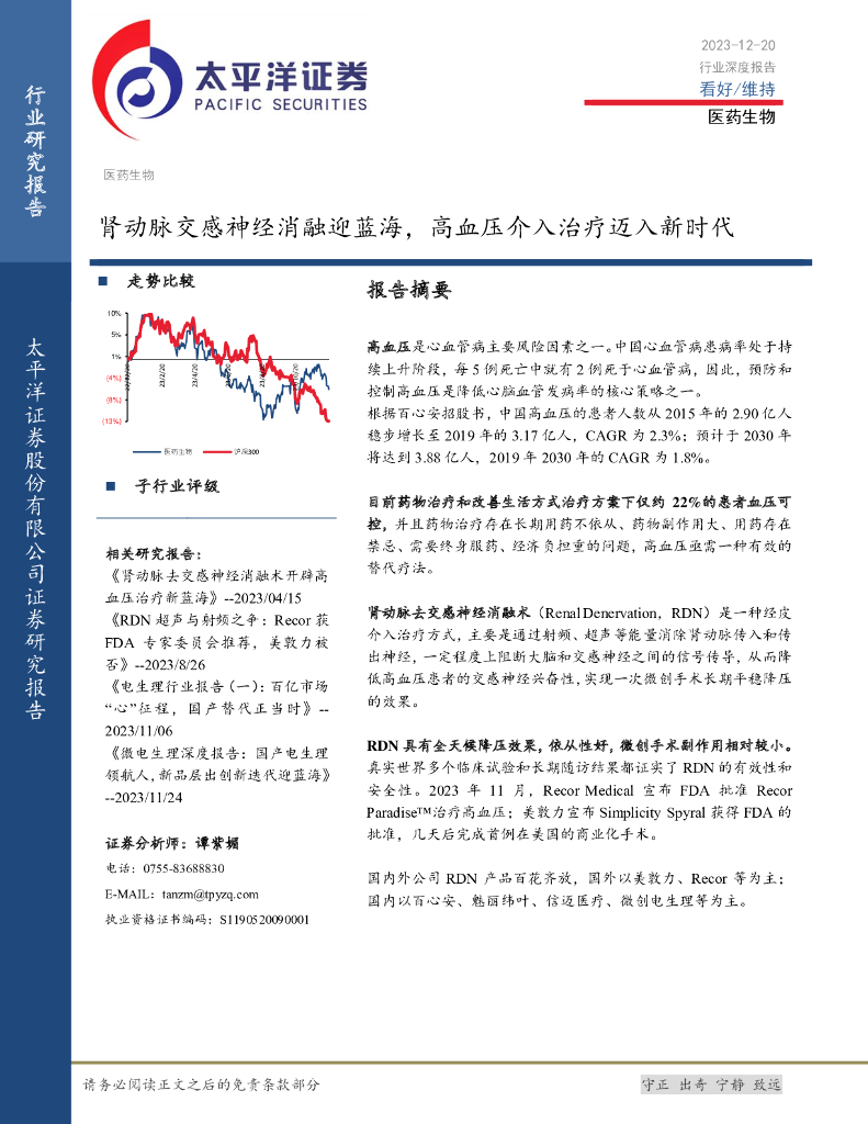 太平洋证券:医药生物行业深度报告:肾动脉交感神经消融迎蓝海,高血压介入治疗迈入新时代.pdf